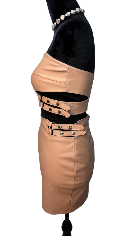 Leather Light pink two piece skirt and tube top